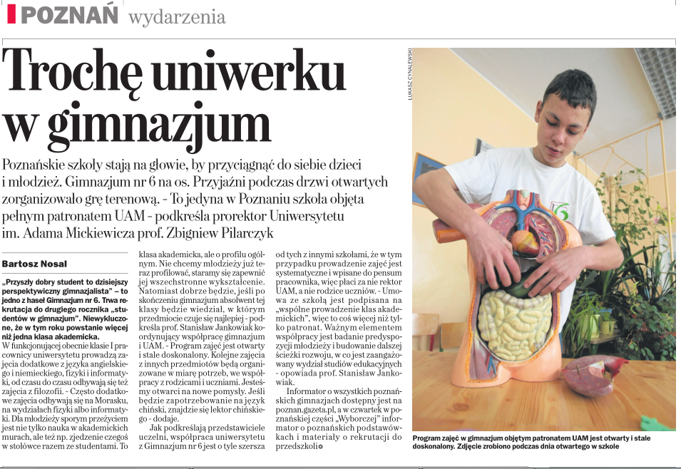 Oto treść listu skierowanego do dyrektora Gimnazjum nr 6 pani Krystyny Wieniawa-Chmielewskiej.